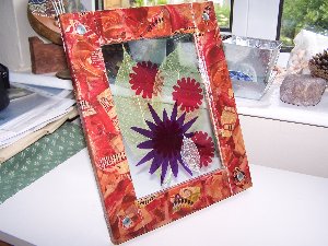 The double glazing was a added bonus for my project. I sandwiched some skeleton leaves and colored cellophane flower cutouts between the glass to make a pretty collage that the sunlight could shine through. |