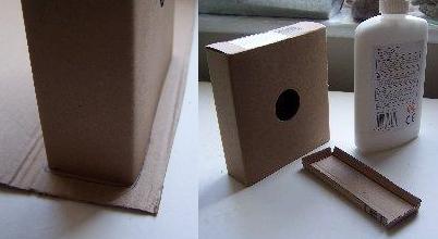 If you can find a small box, great! Just cut out a perfect hole using a compass. You can also cut the end off a long box and make a side for it. |
