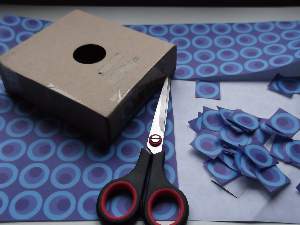 I chose a nice sheet of wrapping paper with blue circles and decoupaged my box. This makes the box stronger and a better resonator too!