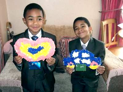 Double over the ribbon and stick it to the back making sure the two ends extend below the bottom. Now all you do is stick those two ends to the back of the tab. James` mum was so happy when he gave her his heart! |