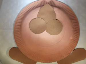 Our paper plate bunny is a bit different to the norm. We are using the plate as the bunny`s body and it`s brown and pink rather than the white and pink version.