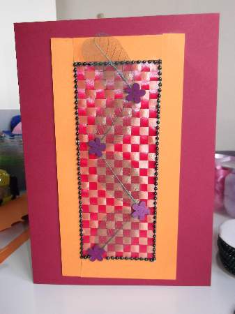 Greetings Cards I love cards with paper weaving designs. There is no end to what you can create using this KkC technique. Here are two card designs to inspire the kids. Ready! Take your colored card and fold it in the center. With the double