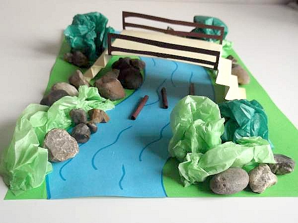 Why not make your own pooh sticks landscape model with paper. Here is how to make it with a river and a bridge to remember your day out. |
